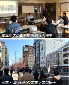 本山地域福祉センターにて、わが岡本地区の景観ルールとルールが具現化された街並みの例をスライドで紹介し、まち歩きにて実際の街並みを見学いただきました。